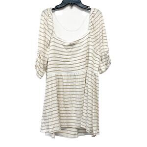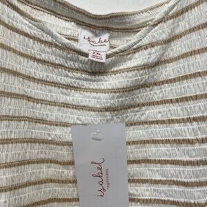Isabel Maternity Women's Elbow Sleeve Smocked Maternity Top Cream Striped XXL