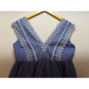 Isabel Maternity Womens Embroidered Chambray V-Neck Blouse Sleeveless Sz XS Blue