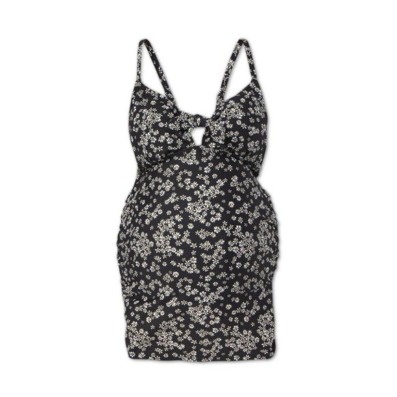 Isabel Maternity Women's Floral Print Daisy Chains Tie-Front Tankini Top Ingrid & Isabel Black/White Large Swimwear.