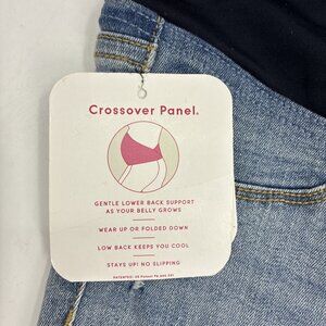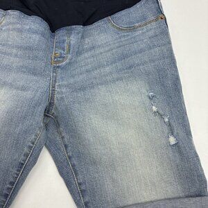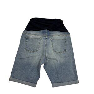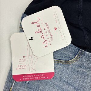Brand new with tags. Isabel maternity denim Bermuda shorts women's size 8, distressed, power stretch, 9 inch inseam, crossover panel, cotton/polyester/spandex.