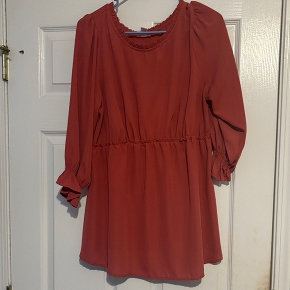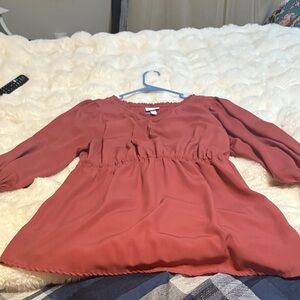 Chic rust blouse with ruffled details. Perfect for versatile styling.