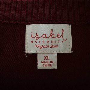 Isabel Maternity by Ingrid & Isabel Sweater - Maroon, size X-Large. Material: 50% Nylon, 33% Rayon, 17% Modal. Machine washable. Excellent used condition - no flaws, no signs of wear, no holes, no stains. Measurements are available upon request.
