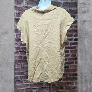 Isabel Maternity Linen Button-Up Shirt Large Taupe V Neck Short Sleeve Collared