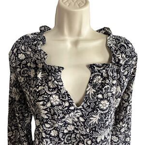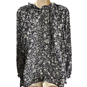 Isabel ~ Navy and ivory blouse ~ side ties ~ smocking detail on sleeve ~ size M