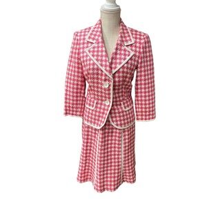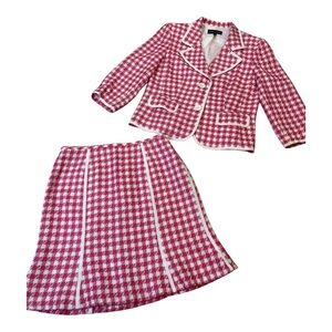 Isabel & Nina Pink White Tweed Blazer Skirt Set Coquette Chic Women’s size 8