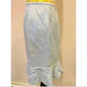 Isabel Nina Womens Skirt Size 8 Blue Slub Floral embroidered Trumpet 55 Linen Career