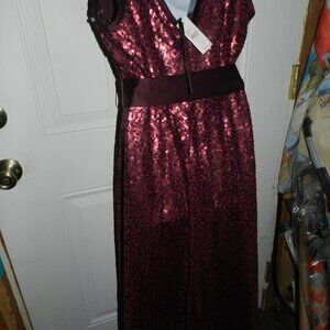 Isabel Toledo for Lane Bryant Sleeveless Highest Quality Material and Design V-neck High-low Sequin Maxi Dress with a removable wide belt to tie in a bow at the front side this comes in color Red Wine Purchased from Lane Bryant design adds a touch of sophistication to your Bridal, Wedding or cocktail party occasion attire in this Stunning Full length Elegant Gown.