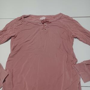Isabel Womens Maternity S Sweater Pink Modal Spandex Long Sleeve Lace Notch Neck