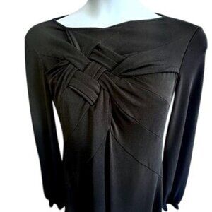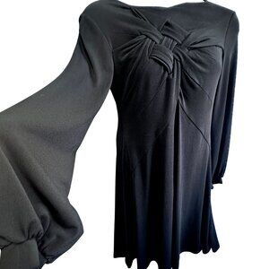 Isabel de Pedro Black Long Sleeve Dress Fit & Flare Knot Front Detail US size 12