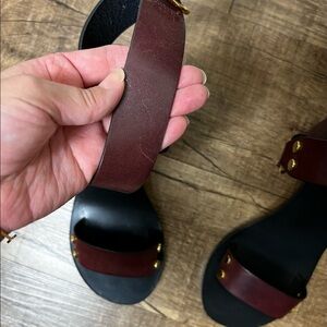 Preowned used one time , some marks on the leather straps and on soles, studded sandals, size 36