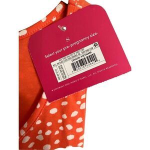 Isabel, maternity NWT, orange and white polkadot midi dress size small