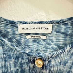 Isabel Marant Etoille Women's 44 Silk Sheer Blue Long Sleeve Buttoned Blouse Top