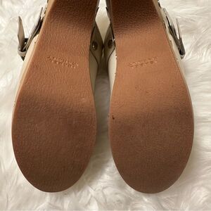 WORN ONCE Isabel Marant Titya Modern Clog in ‘Chalk’ Calf leather upper with rubber sole. Made in Spain. Faux buckle strap at vamp. Buffalo leather lining. Silver-tone stud detail at midsole. Approx 76mm/ 3 inch heel. ISAB-WZ492. 23PSO0004FA-A1C66S.