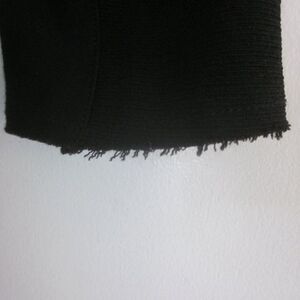 Raw edge hem on bottom and at end of 3/4 sleeve