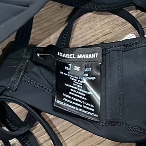 Solange crossover-strap bikini top from ISABEL MARANT featuring crossover strap detail, spaghetti straps, jet black, stretch-design and V-neck. Be mindful to try on swimwear over your own garments..