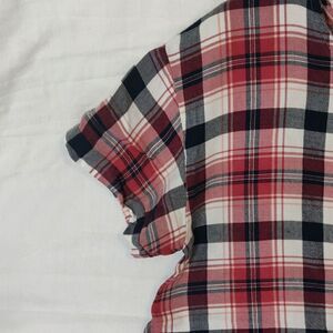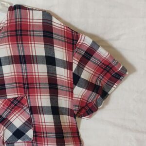 Cute and casual plaid shirt with a cute little pocket! Paired with some denim shorts or capris and sandals makes this a great choice for your summertime wardrobe!