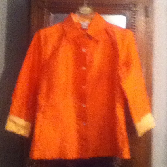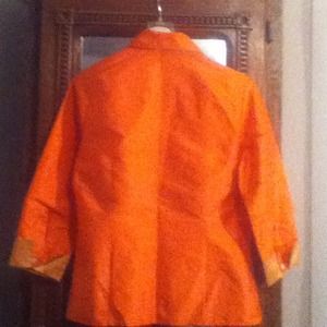 Excellent condition. 100% silk. Looks great over a camisole. Length 24", 3/4 sleeve is 18" from shoulder to cuff.