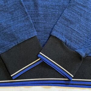Long sleeves, Crew neck, Ribbed elastic collar/cuffs/hem royal/cream/black, Body: 100% Cotton, Rib: Cotton/polyester/spandex, Shown on size 4 dress form.