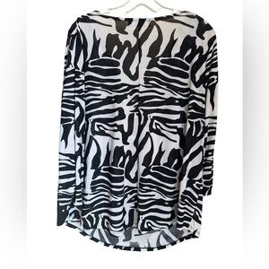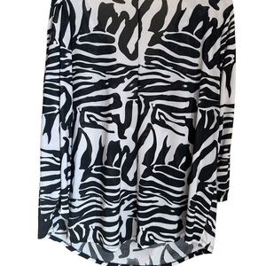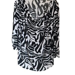 Gently Used cowl neck draped animal print black and white top with ruching on the sleeves women size XXL