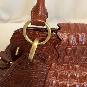 Crafted to Command. Styled to Seduce. Turn heads with this bold and elegant Isabella Adams handbag, featuring rich brown leather embossed in a crocodile pattern. The sculptural center detail mimics the curve of a crocodile’s tail, adding primal sophistication to its luxe silhouette.