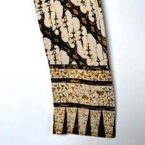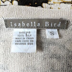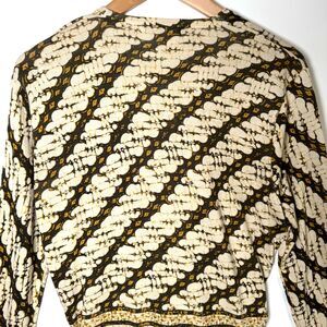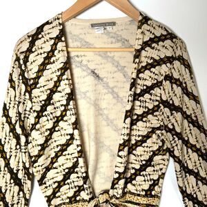 Isabella Bird Anthropologie Silk Cardigan Small Beige Black Geometric Tie Front