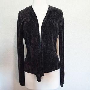 Isabella Bird Black Chenille Open Cardigan Sweater Size L