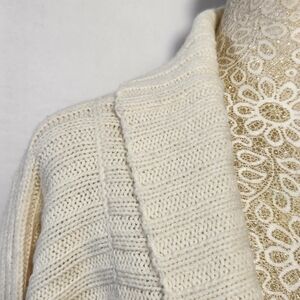 Isabella Bird Women Ivory Wool Blend Long Sleeve Open Front Ribbed Cardigan SZ S