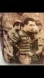 Unique Isabella Fiore tote bag with artistic sepia print. Features rich brown handles. Cream and brown tones dominate the design. Rhinestone beaded sequin embellishments.