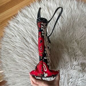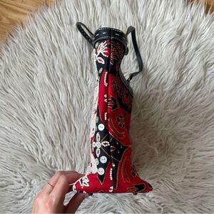 Isabella Fiore Beaded Sequined Paisley Cloth Leather Trim Black Red Shoulder Bag