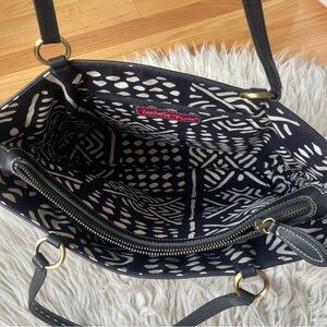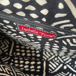 Add a touch of elegance to your outfit with this beautiful Isabella Fiore shoulder bag. The bag features a stunning paisley pattern on a red & black cloth exterior, with brass hardware accents. The bag has a black leather trim and features beaded accents that add a touch of glamour to the overall design.
