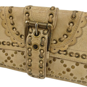 Isabella Fiore Beige Studded Leather Clutch Purse Boho Western Buckle Bag VTG