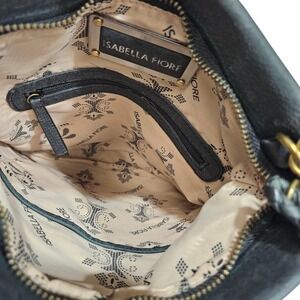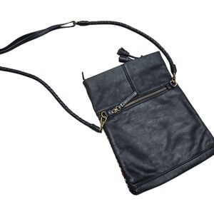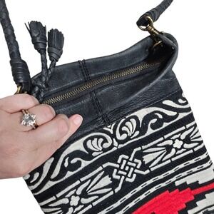 Isabella Fiore Black Leather Crossbody Bag Aztec Embroidered Purse