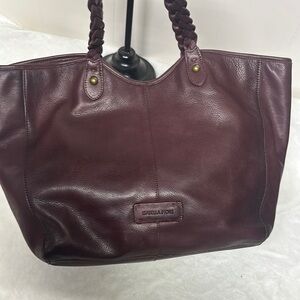 Isabella Fiore Burgundy Tote with Braided Handles and Floral Embossing
