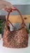 Isabella Fiore Rubbed Leather Laser Cut Floral Hobo Bag. The bag is made of brown leather with a perforated floral pattern over a lighter-colored lining, giving it a boho-chic aesthetic. It has double leather handles and brass hardware. The interior includes pockets for a mobile phone and other items. Can be closed with snap are brass clasp or both. The Rubbed leather that Isabella uses is such a unique antique finish to there collection.