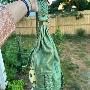 Isabella Fiore Love Dove Tattoo Bag Green Leather Hand Painted Signed HTF RARE