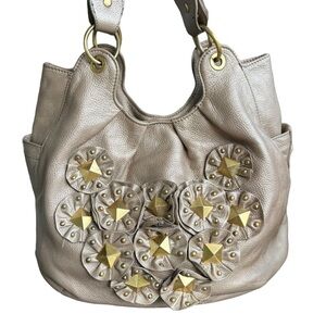 Isabella Fiore Star Stud Angie Bag Beige Bronze Leather Bag Gold with Gold Studs