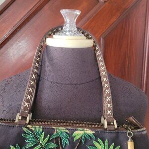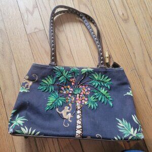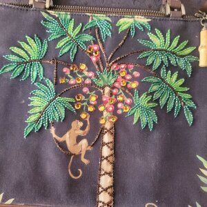 Isabella Fiore Tropical Monkey Beaded Canvas Tote Bag With Leather Accents & Bam