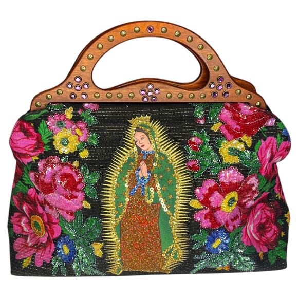 Isabella Fiore Virgin Mary Lady of Guadalupe Embroidered Beaded Bag Religious