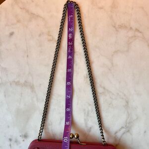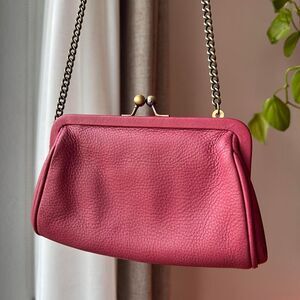 pink leather, studded detail, tattoo-inspired, chain strap, kiss-lock closure, boho vibe, collectible bag, edgy accessories, designer purse, statement piece