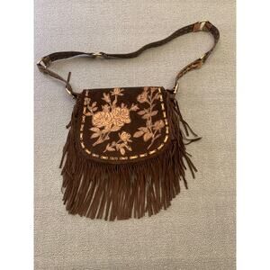Isabella Fiore Women One Size Brown Suede Fringe Messenger Bag Floral