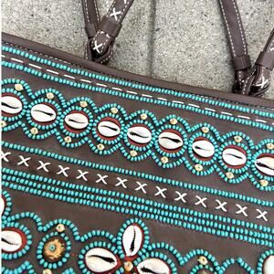 Isabella Fiore | Y2K Leather Summer Seashell Top Handle Boho Beachy Beaded Bag