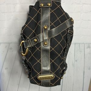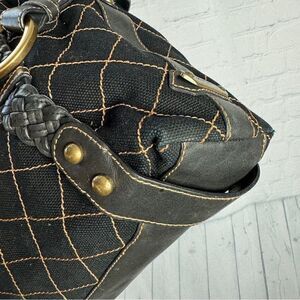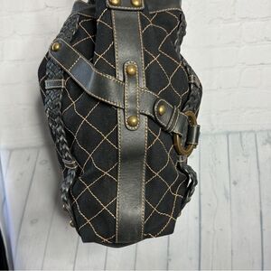 Isabella Fiore black canvas leather embroidered quilted belted large hobo bag