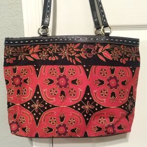 Isabella Fiori Beaded Sequined Canvas Leather Black Red Handbag Tote Bag