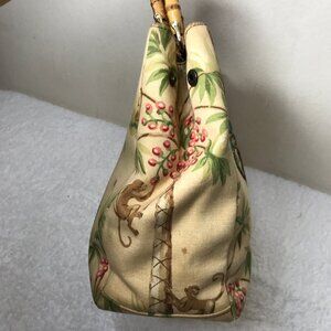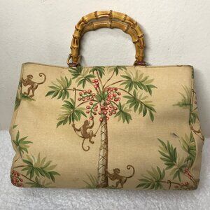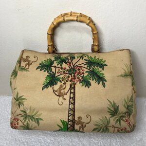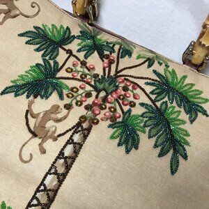Isabella Fiori Vintage Monkey Palm Tree Tropical Beaded Hand Bag Bamboo Handles