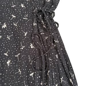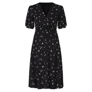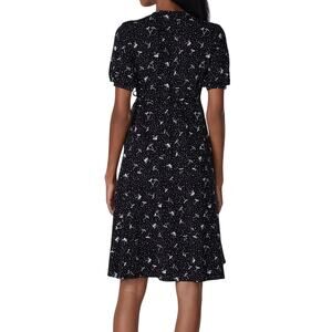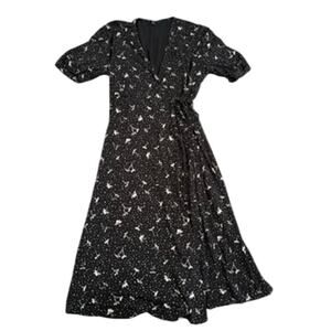 Black and white floral printed jersey (95% Viscose, 5% Elastane). Wrap. Short sleeves. V-neckline. Wrap closure. Fully lined. 40.5" from shoulder to hemline. Imported.