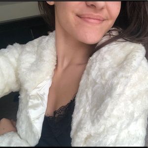 Isabella Rodriguez Foax White Fur Cropped Coat