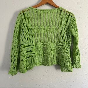 Isabella Rodriguez Lime Open-Knit Cardigan Y2K Neon Casual Crochet Large Vintage