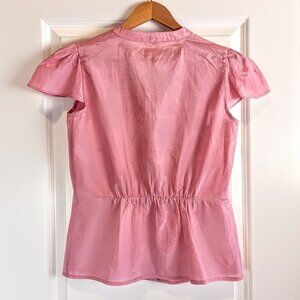 Isabella Rodriguez Pink Pleated Cotton Silk Cap Sleeve Top