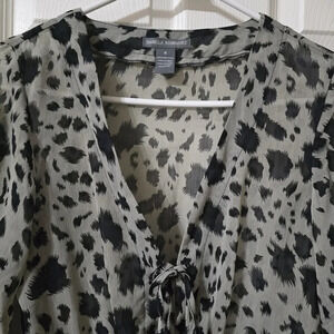 Isabella Rodriguez Sheer Cheetah Print Tie Front Blouse. Women's Size Small. Excellent condition!