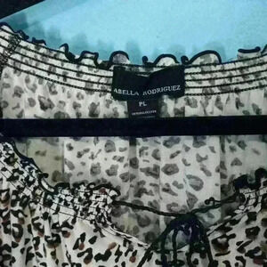Isabella Rodriguez leopard print top size PL elastic sleeve and waist L
